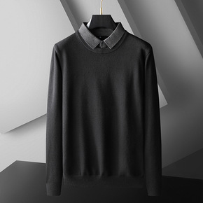 2021年秋季新款男士加肥加大码圆领假两件针织衫男...