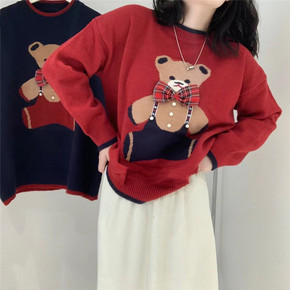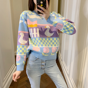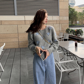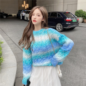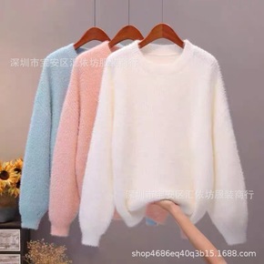 2021秋冬季韩版网红慵懒风毛衣女圆领套头宽松女式...