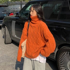 秋冬复古日系慵懒风2021新款半高领针织衫毛衣女外...