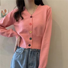 bm长袖针织衫春秋新款女装修身短款上衣配高腰裤v领...