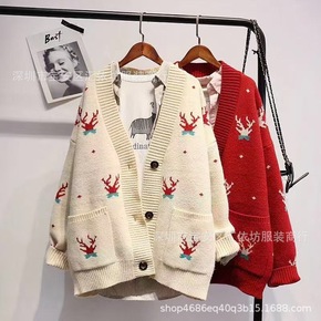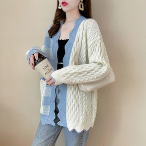 秋冬慵懒风韩版宽松开衫女装毛衣休闲外搭保暖针织衫外...