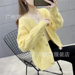 2021秋冬季韩版女装加厚针织开衫 大码女式外套毛...
