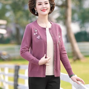 2021新款中老年女装秋冬衫衣外套妈妈装女士羊毛开...