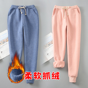 加绒加厚运动裤女秋冬新款纯色抓绒卫裤大码外穿休闲哈...