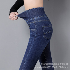 牛仔裤女装大码新款087跨境批发刺绣弹力高腰韩版时...