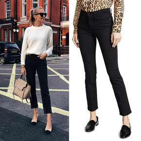 网红牛仔裤女冬超高腰女式高弹力紧身九分黑色裤子显瘦...