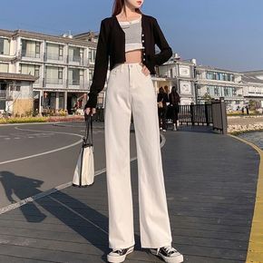 高街白色直筒牛仔裤女秋季2021年新款高腰宽松韩版...
