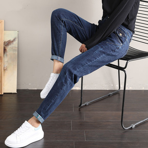蓝灰色新款大码铅笔小脚牛仔裤女弹力九分显高2022...