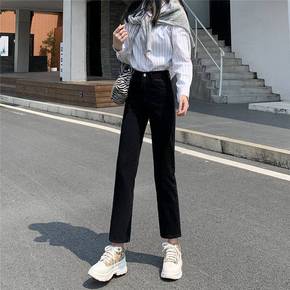 裤子女黑色直筒牛仔裤女装2022年新款高腰宽松显瘦...