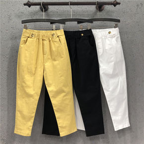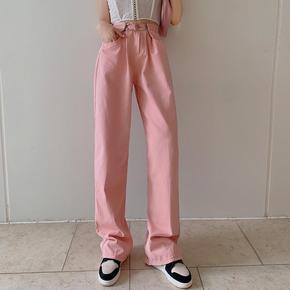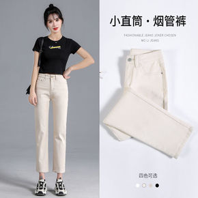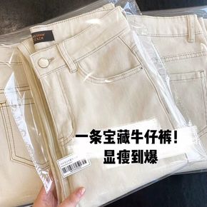 2021年新款白色裤子女春秋牛仔裤米色直筒裤高腰卡...