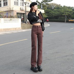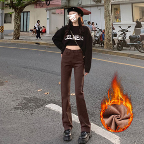 烟灰色加绒牛仔裤女直筒2022年新款春装小个子高腰...