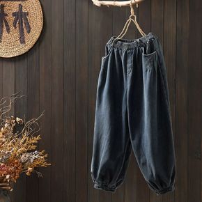 加厚抓绒水洗牛仔灯笼裤女季新款复古宽松大码个性老爹...
