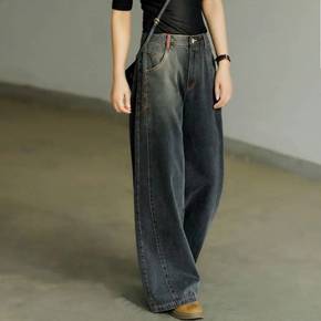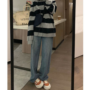 春季新款复古蓝高腰阔腿牛仔裤女百搭宽松直筒慵懒风怀...