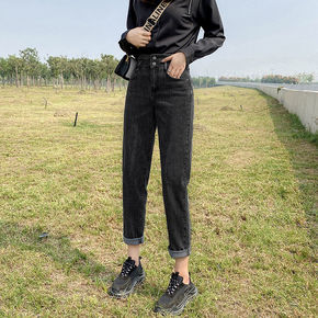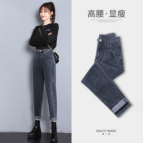 哈伦牛仔裤女年新款宽松小脚高腰显瘦显高弹力老爹裤子...