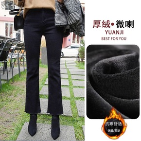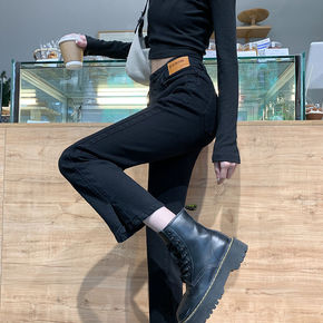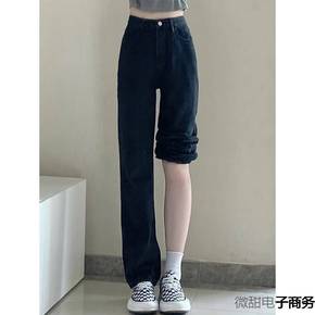 牛仔阔腿裤加绒黑色直筒牛仔裤女2022年春秋新款宽...