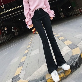 牛仔喇叭裤七八九分牛仔裤女大码高腰弹力新款开叉微喇...
