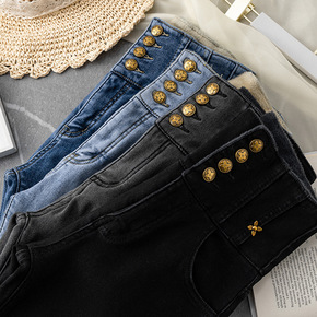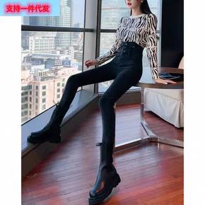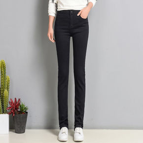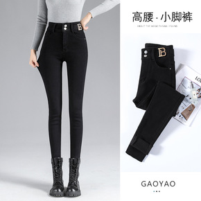 2022春款铅笔牛仔裤女高腰冬显瘦百搭新款黑色弹力...