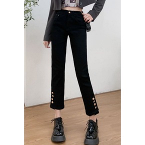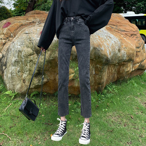 黑色牛仔裤紧身高腰直筒女春秋季宽松显瘦九分烟管裤百...