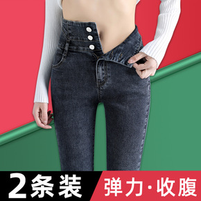 高腰牛仔裤女2022年新款春秋修身显瘦烟灰色弹力紧...
