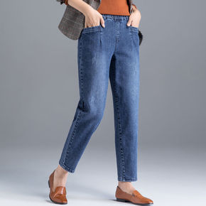 牛仔裤 薄款女士女宽松显瘦哈伦春秋新高腰松紧腰九分...