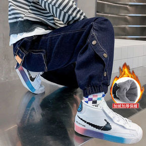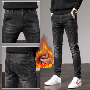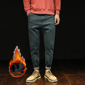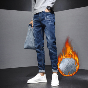 冬季爆款男式小脚加绒牛仔裤优质弹力舒适裤子青少年加...