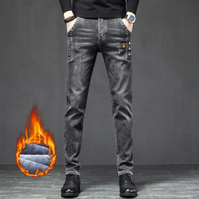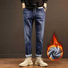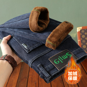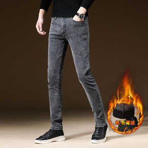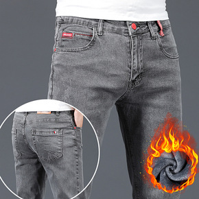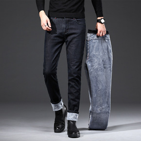 加绒牛仔裤男青年冬季加厚保暖长裤大码中腰棉弹直筒裤...
