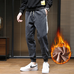 加绒裤子牛仔裤男秋冬弹力宽松小脚裤青年时尚潮流韩版...