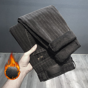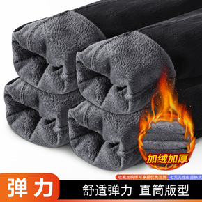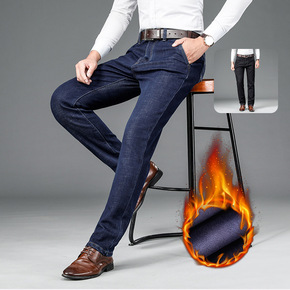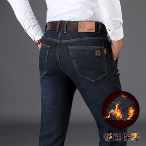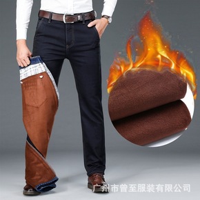 2020冬季男士牛仔加绒加厚长裤子商务直筒宽中青年...