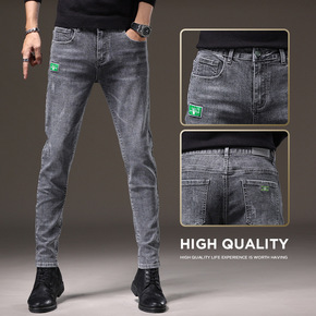 秋季休闲牛仔裤男常规加厚修身弹力...