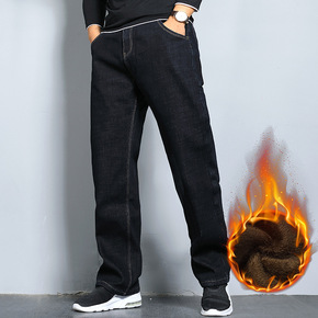 冬季加绒加厚牛仔裤男宽松直筒弹力男式裤子商务休闲大...