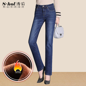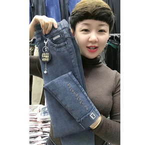 弹力高腰大码直筒牛仔裤女春秋长裤显瘦百搭女裤中年妈...