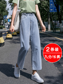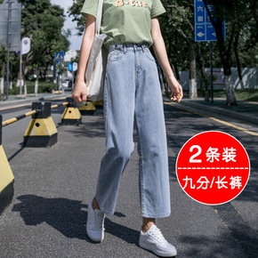烟管直筒牛仔裤女夏季2022年新款高腰宽松显瘦八分...
