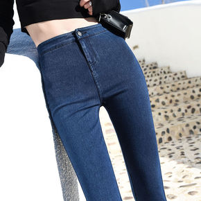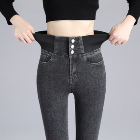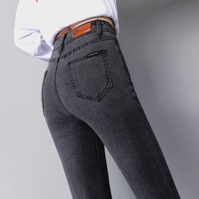 春秋韩版灰色高腰牛仔裤女九分裤弹力显瘦显高修身小脚...