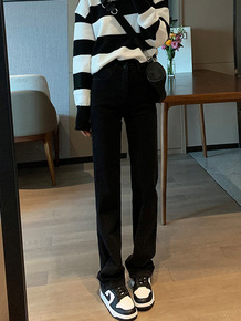 KYY黑色直筒牛仔裤女高腰2021秋冬新款百搭显瘦...