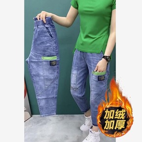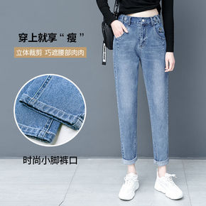 老爹牛仔裤女年新款潮高腰秋冬直筒宽松萝卜九分哈伦裤...