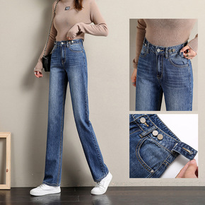 高腰显瘦牛仔裤女2022直筒宽松新款小个子春装广州...