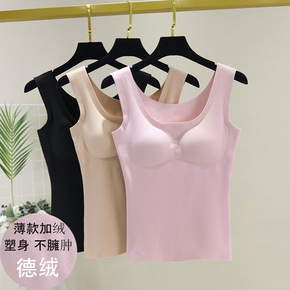 德绒无痕自发热美体保暖背心女带胸垫加绒加厚打底内衣...