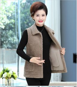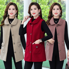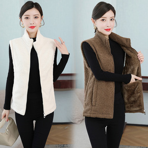 秋冬中老年羊羔毛马甲女韩版皮毛一体带领马夹妈妈装背...