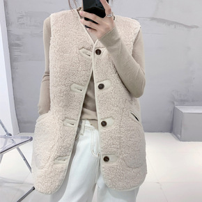 羊羔毛马夹外套女秋冬皮毛一体宽松显瘦毛绒两面穿麂皮...