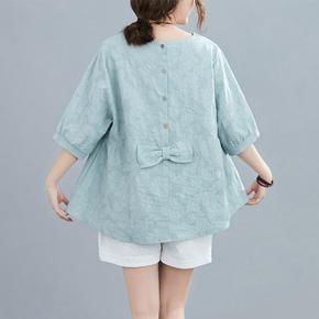 特大码胖mm300斤夏季新款网红修身显瘦蝴蝶结短袖...