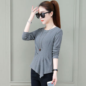修身显瘦长袖打底衫女上衣2022春夏时尚洋气不规则...