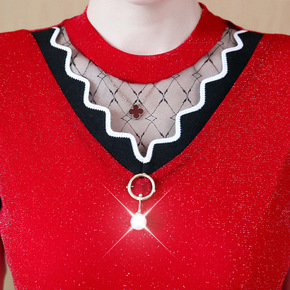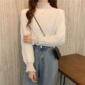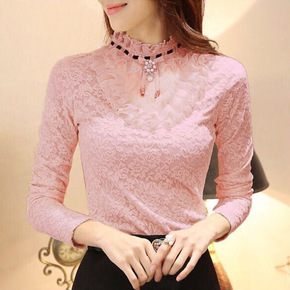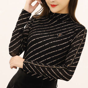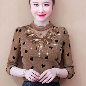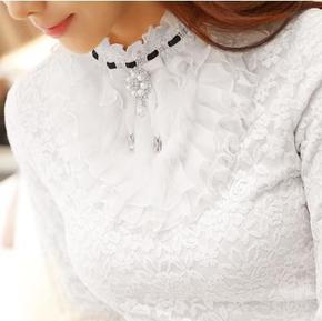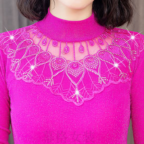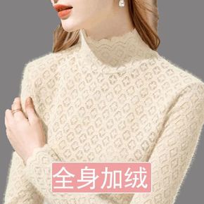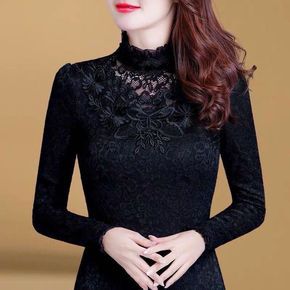薄款/加绒加厚半高领小衫女T恤秋冬装洋气蕾丝上衣i...