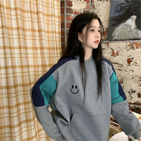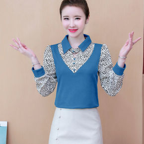 ins风/加绒新款加厚韩版小衫潮雪纺衬衫针织拼接假...