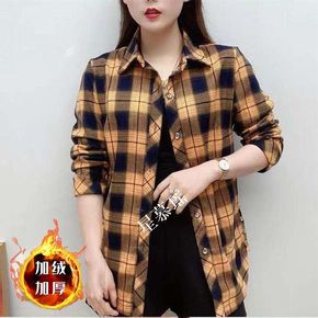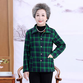 中老年女妈妈装加绒衬衫秋冬打底上衣奶奶装加厚保暖衬...