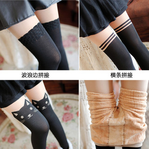 日系卡通拼接丝袜假长筒过膝高筒大腿秋冬加绒加厚踩脚...