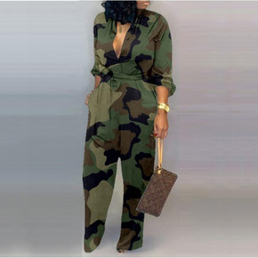 2021新品跨境亚马逊速卖通欧美女装阔腿裤迷彩连体...