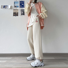 华夫格运动裤女秋冬季新款宽松直筒休闲裤子百搭显瘦抽...