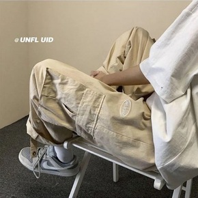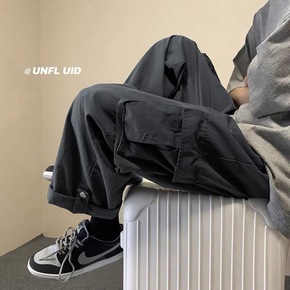 夏季工装裤男潮牌宽松直筒裤子男韩版潮流薄款运动束脚...