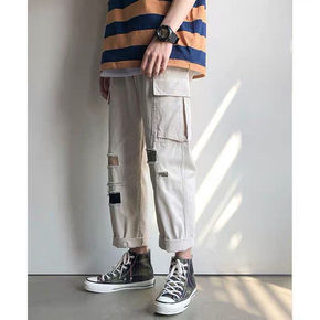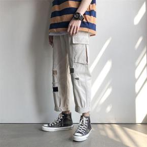男工装裤潮牌工装裤男宽松原宿风束潮流休闲九分日系学...