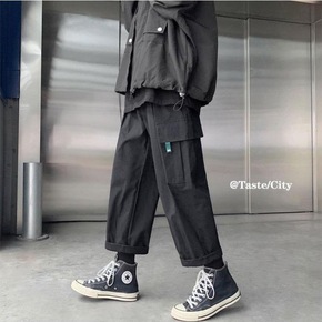 2022工装裤新款男潮牌九分休闲长裤男宽松春季束脚...